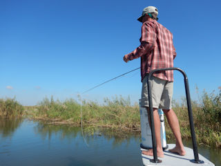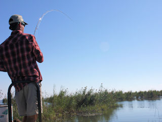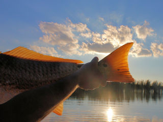 The next spot didn’t resemble anywhere I’d expect to fish for redfish. Cleve used his electric motor to guide us into narrow Roseau Cane bordered channel. The water was deep and off color. Cleve said when we reached the back corner there would be schools of mullet and a huge cagey redfish.