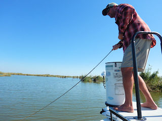 It’s about an hour and a half from our hotel in New Orleans to Cleve in Venice. We left at 5:30 AM and by the time we had breakfast, picked up lunch and gassed up the boat, we left Cleves dock at 8 AM. There was little wind and the early morning sun already had heat to it.