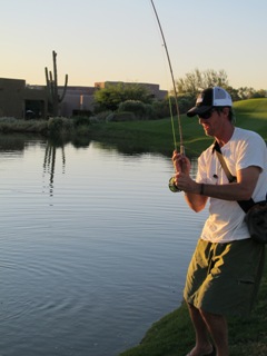 The seminar went well and we ended just shy of 4. I must admit this was intentional because as expected, Steve, Cinda and I were headed for the canal where Steve and I spanked the grass carp yesterday. But our plan was rerouted. One of the students and longtime Desert Fly Caster member John Mayer suggested we go check on some of the carp around his golf course in East Mesa. Being you’re not allowed to fish on most golf courses, how could we refuse such and offer?