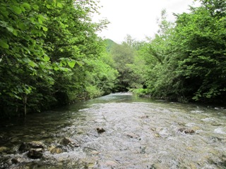 Vladi woke up to a terrible blister on his foot from his wading shoes. We definitely walked our butts off yesterday on the Kupa River in Croatia. Unfortunately the blister was so bad he could hardly walk and putting his wading shoe on was impossible. Vladi gathered some special leaves from the forest, wrapped them around his blister and decided to rest the foot. With only me fishing I thought it was a good idea to go to the Reka Baču, the river I fished on for a few hours on Day 1. Only today we went to its upper reaches where the river is so tiny only one person can fish at a time anyway.