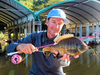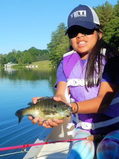 At one point Sierra handed me her pink fly rod so she could eat her breakfast. I couldn’t help but drop a few casts myself. I ended up catching one of the largest New Hampshire bluegills I’ve ever seen. Nice work by Sierra with her photography!