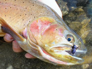 n’t as cooperative as the one that took the caddis downstream. For this next one I returned to the car for my new 4-weight Winston Air. Then I must have changed flies six times and also dropped my tippet to 5X. Finally I fooled my second big cutthroat on a beetle pattern that I acquired for yellowfishing on Sterkfontein Dam in South Africa a few falls ago. When fish get selective don’t be hesitant to toss a fly at them they’ve never seen!