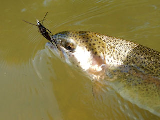 Well, the long story short is that I’m too good a trout fisherman. We stretched the half hour to an hour trying so hard for the Chattahoochee bass but all I could catch were stocked rainbows. I caught six of the rascals and not one bass. Michael picked up a few of the redbreast sunfish and not a bass either. Next time.