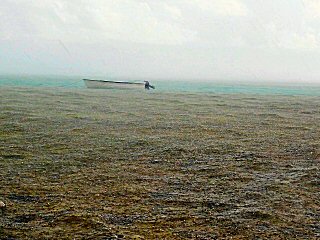 Far off (300 yds.) to my left a large shape appeared. Hermans is close to where I cast to the tiger shark on Day 1. While most sharks are nothing to worry about a 10-foot tiger is. They are true man-eaters. Without thinking twice, I headed for higher ground – hoping Brendan would meet me along the way so I could get in the boat.