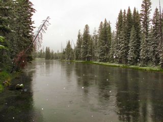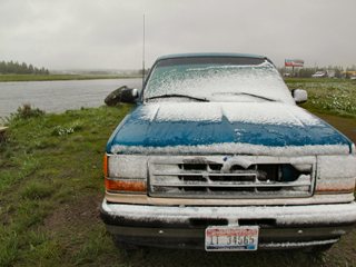 The Explorer shook like crazy all night from strong wind while the rain changed over to a crappy garbage type snow and slush.  After a late night at the Trout Hunter Bar and Grill catching up with old friends, this weather you see was not easy to wake up to.  However, fishing can be great on days like this and despite the harsh conditions, Granny and I crawled from the sleeping bags early.  The big problem though is that these mornings are too cold and fishing usually doesn’t start getting good till mid afternoon.  We didn’t have all day and while we checked on all parts of the river until noon, not a fish or insect stirred. We left the Henry’s Fork today without ever making a cast.