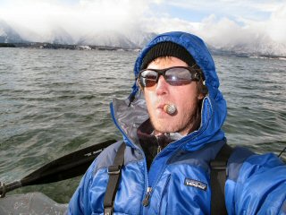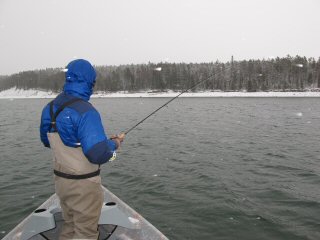 That’s about all the excitement for the day. We fished for about three hours total. We all thought we may have had a strike but no proof. The only one to catch a fish was Neil but he cheated, he was jigging with a spin rod. Probably the smart one when you think about it. But even with this evil method he only caught one. Fishing was brutal. After freezing our hands for three hours and nothing, I pulled cigars from my Simms bag and Weldon and I spent the last hour enjoying a smoke with our hands in our gloves. The sun actually poked out and the snow stopped. That lasted a whole five minutes and the snow started again. What a great day.