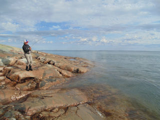 The water looked excellent. There were rocks surrounded by deep water and current lines against shore. I don’t know much about fly fishing for Arctic char but in my mind this was a good place. But after fishing around Ely Island for more than an hour at every good-looking spot without a tug we began to scratch our heads. What is the ideal char water?