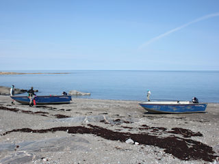 Paul Ostiguy and his staffs most difficult hurdle at Inukshuk Lodge is dealing with tides. Ungava Bay is the Atlantic Ocean and in this particular location the variation from low tide to high tide is one of the largest in the world. Its two days after the new moon (spring tide) and todays difference between low tide and high tide was a remarkable 42 feet.