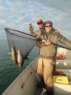 When I said I had two char Burt and Paul gave me that look – if looks could kill. Paul knows me pretty well and perhaps he thought I was joking. Burt took no chances and pulled out his camera and started the video. Soon I was explaining to Paul how to net two fish. Normally netting two fish is a difficult chore. Paul nailed them both on the first try.