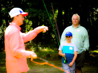When I give full day seminars everyone brings a fly rod. After my demo about 30 of my students spread out on the lawn and worked on their casts. Some of my students already know the basics so they helped me work with the group. I’m pleased to say everyone had the basic overhead cast and false cast down wonderfully.