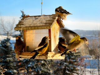 After rolling in late Tuesday night from an intense three week show circuit I was glad to put my feet up in my own house, drink some pressed coffee and watch my hungry birds (these are Evening Grosbeaks) indulge after a period of empty feeders. When I left on January 5th it got light out at 7:30 AM but now it gets light at 7. The best thing about a busy January is that it flies by and the cold dark days are gone before you know it.