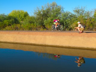 The canals on today’s agenda were very close to Steve’s apartment. Steve lives in Mesa, AZ and I’ll bet we drove less than ten minutes to get to this one. I’d love to tell you more about where we were, but after a couple turns and more than three traffic lights this place all looks the same around here – fast food and shopping malls over and over and over again.