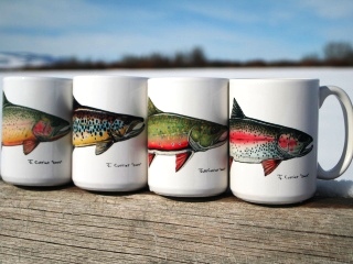 If you haven’t bumped into the Fish and Game Art Gifts yet then I guess its time, especially where many of you have been sipping coffee out of my colorful fish mugs every morning for years. This new web store has added my fish to numerous great products. You’ll find unique items anglers love from beer steins and travel mugs to beverage insulators and frosted mugs. They also have things to suit the non angler too like Christmas Ornaments and towels to cutting boards and trivets, every creation decorated with my fish art of your choice. And if there’s a particular fish species you want and they don’t offer it, make that species a special order. With a little time, I can paint any fish you request.