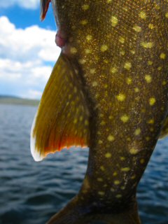 On this side of the lake there was too much breeze for risers but perfect chop for stripping leeches. I secured my dry fly set up and grabbed my leech rod. Two hours later I’d landed four more huge cuttys and a spectacularly colored 23” lake trout.