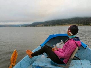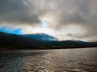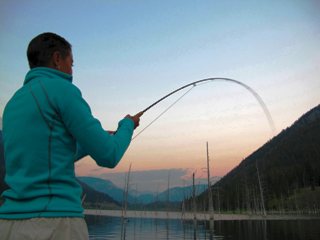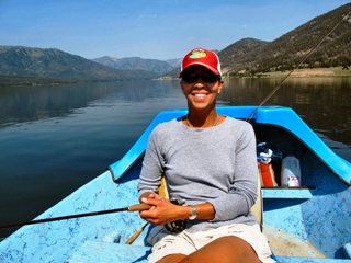 Opportunities remained few and far between. The clouds burnt off and the breeze stopped completely. At noon Granny and I had landed a mere two rainbows. The blue sweater was long retired back in a heap in the bottom of the boat and we were sweltering in windless heat. The few fish we’d seen were gone deep. We packed it up and drove the short six miles to our true favorite, Quake Lake.