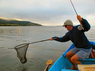 Once I rowed us to my spot, we drifted along in a light wind. With the clouds, dawn light and a minuscule breeze on Hebgens surface, spotting a gulper was tricky. Soon my eyes adjusted and there was the first gulper of the day. Then I noticed several. The fish were here, but rather than gulping long enough to chase down and cast at, these trout made two or three rises then disappeared. Fishing was extremely tough.