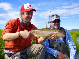 Even when it’s hot and there are few bugs on the water you keep a watchful eye for the nose of a rising rainbow.  Trout are like people.  If a good snack finds its way on to a plate we’re going to eat it.  On the Ranch there’s always the likelihood that some type of insect will float by and the trout is going to eat it.  If you’re watching the water it’s an opportunity to locate a fish.  Jack, our New Zealand guest for the Marathon, spotted this beautiful rainbow while sipping an IPA.
