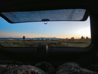 It takes Granny and I a few minutes to right ourselves after the evenings campfire party but once organized we migrate to the Last Chance parking lot for coffee and breakfast.  That first hour of daylight from 6 till 7 is relaxing.  Also, a reunion takes place as friends I haven’t seen in a while arrive to do the same.