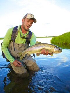 Everyone’s strategy worked.  During that first hour nearly all of us hooked up.  These big rainbows aren’t easy to land so despite the hook ups only three came to hand.  This was a nice one by Josh (Sicket) Gallivan.