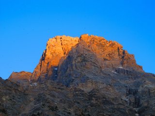 We covered about seven miles and camped above South Cascade Canyon in a group site. When we arrived we had thunderstorms all around us but none centered on us and we enjoyed some light drizzle for a few hours before the sun broke back out. Then we sipped our favorites and watched the sun rays light this unusual view of “The” Grand Teton.