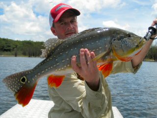 but last year three of my guests got 18lbers. Tucanaré have been recorded to nearly 30lbs, but trust me, an 18lber on a fly like this one here Gregg Friedman is holding is all you can handle.