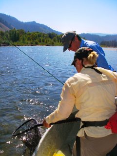 Today I competed on the Pritchard to West Table section of the Snake River downstream of Jackson, Wyoming.  My guide/judge and long time friend was Jean Bruun.  Jean is married to Paul Bruun who is frequently on the blog as he and I fish together a bunch when the weather goes bad in late fall.  Jean and I have been on a few big floats together but this was actually the first time I’ve been her boat.  She’s been a fishing guide for almost 20 years and has built a name for herself as one of the best.  Although I didn’t consider myself lucky to draw my stretch, I considered myself extremely fortunate to draw Jean as my guide.