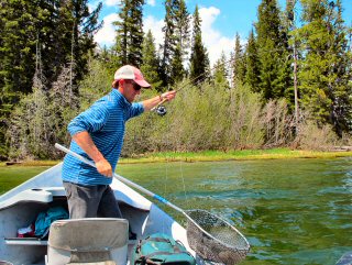 Rick Schreiber has lived in Jackson Hole, Wyoming since the 70’s. Despite our 20 year age difference, we’ve been friends since about when I moved to Jackson in 1987. We competed against each other in pool tournaments, then he guided out of the fly shop I managed and we even have a mutual friend that takes us to Wisconsin every year to fish. Furthermore, Rick fly fishes the lakes in and around Jackson more so than anyone I can think of. You already know I enjoy the lakes too and today Rick had a seat in his boat for an afternoon up at Jenny Lake in Grand Teton National Park.Jenny is a lake that I used to fish a bunch. In fact, I ice fished the lake a lot back in the day. I once caught a 24lb lake trout out of there during a terrible snow storm through more than 3 feet of ice. Now that I’m over in Idaho, I rarely get to Jenny anymore. So when I got the email invite from Rick I jumped on the chance.