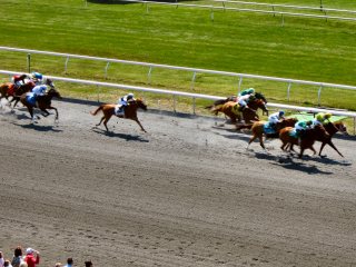 Each of today’s ten races was slightly different. The finish line is forever in front of the stands; however the starting point always varies in order to change the lengths of each race. The first race started on the far side of the track. Those seated down low couldn’t even see the start other than on the big screen. We however could see the horses lined up nearly a mile away. They announce the start and the horses take off. It’s dead silent. All you see are the horses moving in the distance at mock speed ahead of a trail of dust. I could not believe how fast these horses ran. Less than a minute later they approach the finish line. The crowd roars and even louder than the roar of the crowd comes the sound of galloping horses and flying dirt. Then the horses and their colorful jockeys explode across the finish line in a cloud of dust.