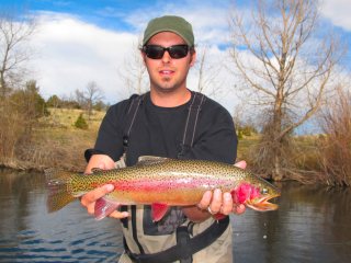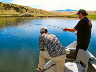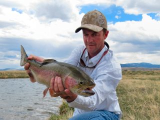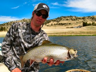 Let’s just say that possibly getting in trouble with the wife was a great move.  Even on this normally fickle lake, we flat out smeared a bunch more fish.  Derek nailed one of the prettiest rainbows I’ve seen in a long time ten minutes into the evening.  We even caught one more nice brook trout.  It was a great ending for a superb day of fishing and an exceptional way to end my jaunt to Montana.  At 8 PM we said so long and began my four hour drive back to Victor.