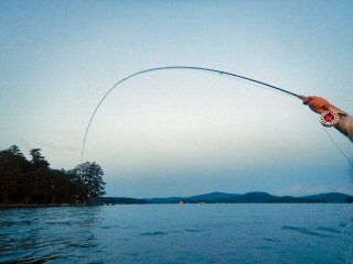 Tonight after dinner my sister and I went out on Lake Winnipesaukee for smallmouth. The lake has become so busy for the 4th of July holiday that there must have been a hundred boats racing past us while we were trying to fish from the canoe. The boat waves made the canoeing a bit dicey. I pulled a miracle 12” smallie from under the dock where Jimmy Fallon is staying. He was outside relaxing with his family.