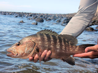 Sam had a Pacific cubera snapper and after nearly losing him in the rocks he got him. It was a beautiful fish and I shot some pics before he released him. Then I watched as Sam walk right back out and landed another. After shooting more pics I figured I ought to catch one more fish before heading home and I also landed a Pacific cubera.