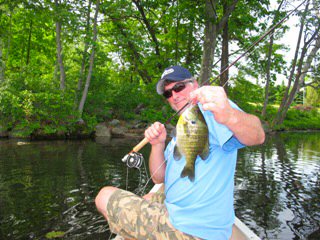 After that I continued to paddle Jon along the entire perimeter of Back Bay.  We caught up on things and laughed about all the great old times we had in Back Bay and around Wolfeboro as kids.  And Jon caught this nice bluegill.  One of the few bluegill I’ve ever seen in Back Bay.