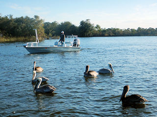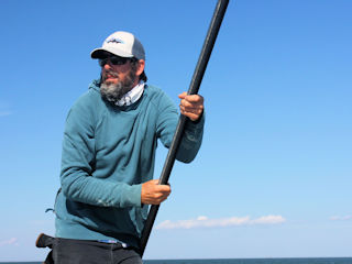 Paul’s new flat was out in the middle of a huge bay.  There were shrimp boats working the area out deep and a rock jetty protruded out of nowhere.  There was some minor wind and the water was significantly clearer than earlier.  No doubt the environment was different and Paul went to work with the pole and Granny took the bow.