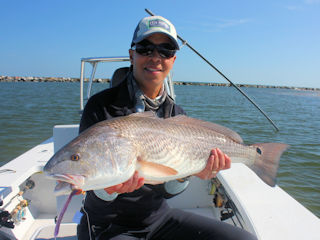 We had a good chance to hook more than one here.  The red Granny cast to was traveling with a friend.  I had a second Winston rigged and reached for it as quick as I could but by the time I was ready to cast the other had spooked off.  Soon Granny landed her second redfish in two days.
