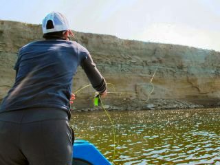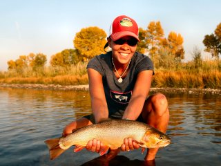 It only took a matter of minutes to put the first fish in the boat.  Granny was rigged with my Ross RX 5-weight and two winged Chernobyl’s spread 5 feet apart.  I’ve mentioned before, few people twitch and make flies look natural like Granny.  She had fish leaping all over her rig including this nice brown that ate her upper fly.