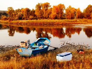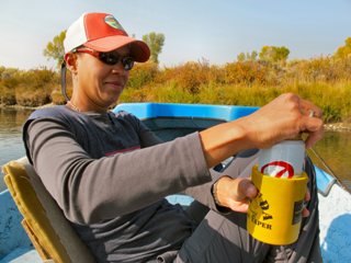 The coyotes were amazingly vocal as were a few great horned owls.  Granny made an extraordinarily hardy camp meal to keep us warm on another cold night.  I cleaned the boat which included crushing all Granny’s tall boy beer cans then I sipped red wine and watched the leaves change.  There’s not a much more beautiful representation of fall than a colony of cottonwood trees bursting in yellow and orange at sunset.