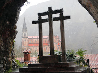 After enough cider we walked back to the Gueña River. Perhaps we thought the rush of water might look better but it didn’t. By now it was around 6 PM. Jetlag tiredness was setting in hard. We headed back towards the hotel when Pablo decided to show us the Covadonga which is an incredible church/sanctuary on the top of a mountain. There are caves and candles and it was very cool for the hour we spent.