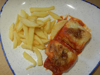 To say its raining is an understatement. I was aware of the forecast for a storm but today was bad. Luckily, our guide Pablo Castro Pinos wasn’t meeting us till afternoon. After coffee we headed for a killer brunch at an Asturian Restaurant. I had baked cod with French fries. It even came with a choice of beer or wine.