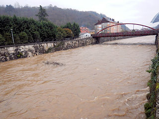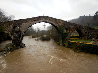About 10 km from our hotel is the village of Cangas de Onis. Through it runs one of the competition waters, the Gueña River. It’s a busy little town with narrow streets and shops and restaurants on every corner. The only bad thing about the bustling city is the parking situation but we found a place next to the river. The first thing we saw was a tree floating on top of the chocolate colored water.