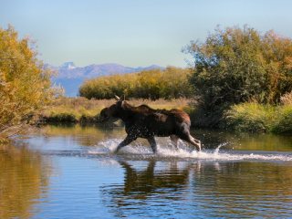 I have moose explode across my bow a few times each summer. Dad has seen it before. But Mom was a little scared.
