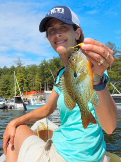 My sister and I hit the lake early this morning but it was like a graveyard.  I think the amount of speeding boats has put the fish in a state of shock.  To give you an idea how the fishing was – this colorful redbreast sunfish was our only catch.  He’s gorgeous though and was a good one to end on.