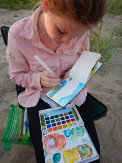Other than the burbot excitement the afternoon session was a scorcher and the fish were absent. Montana caught one more nice brown trout and this time she got to release it back to the wild. By 5 pm Montana was asleep in the bow of my boat hiding from the sun and Sammy started a watercolor painting from the back seat. I knew it was time to pull into a camp.