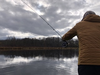 pikeToday in Northern Wisconsin it was partly sunny with no wind and temperatures in the low 40°s.  It was a gorgeous day to fly fish.  The only thing holding me back from jumping out the door when Bob rang was my vicious work load that includes preparing for Fly Fishing Shows, packing for upcoming international trips, yardwork and typical house chores.  But I thought about it for about 30 seconds, then said screw it, “Let’s do a short day and see if we can find some pike”.