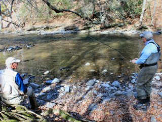 Jerry and I are flying home tomorrow.  We’re hoping to make a few casts at Fisherman’s Paradise on the way to the airport.  I saw a few carp there last year so I packed along a few carp flies.  Unless I catch one, this is it from State College, PA with Joe Humphreys and Jerry Arnold for 2017.