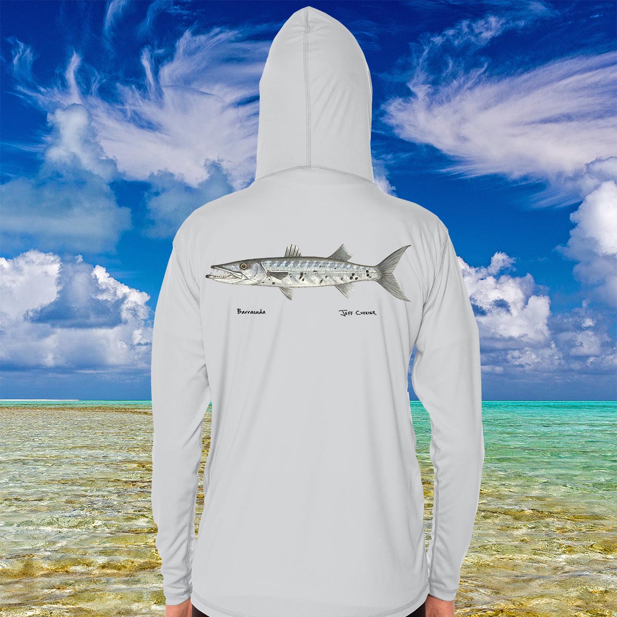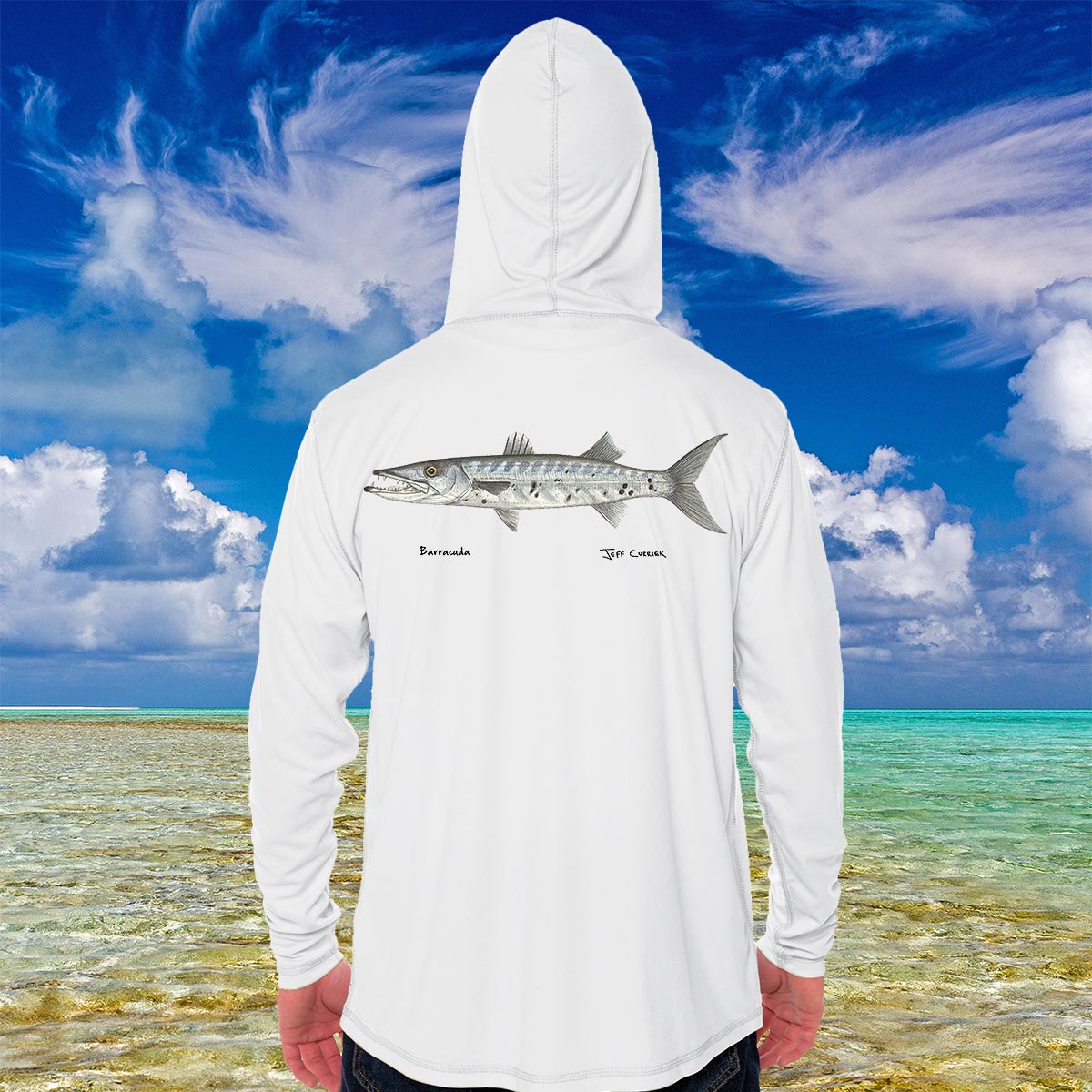 We simply love these hoodies. Weather you are out fishing or just mowing the lawn, these shirts keep the sun off and keep you cool. The material is lightweight and nearly impossible to put a wrinkle in them. The anti-microbial technology is zinc based, and fends off a lot of our odor causing bacteria. The moisture wicking adds to keeping you cool, but the best part is wash after wash these shirts continue to perform, and Jeff’s artwork will never fade.