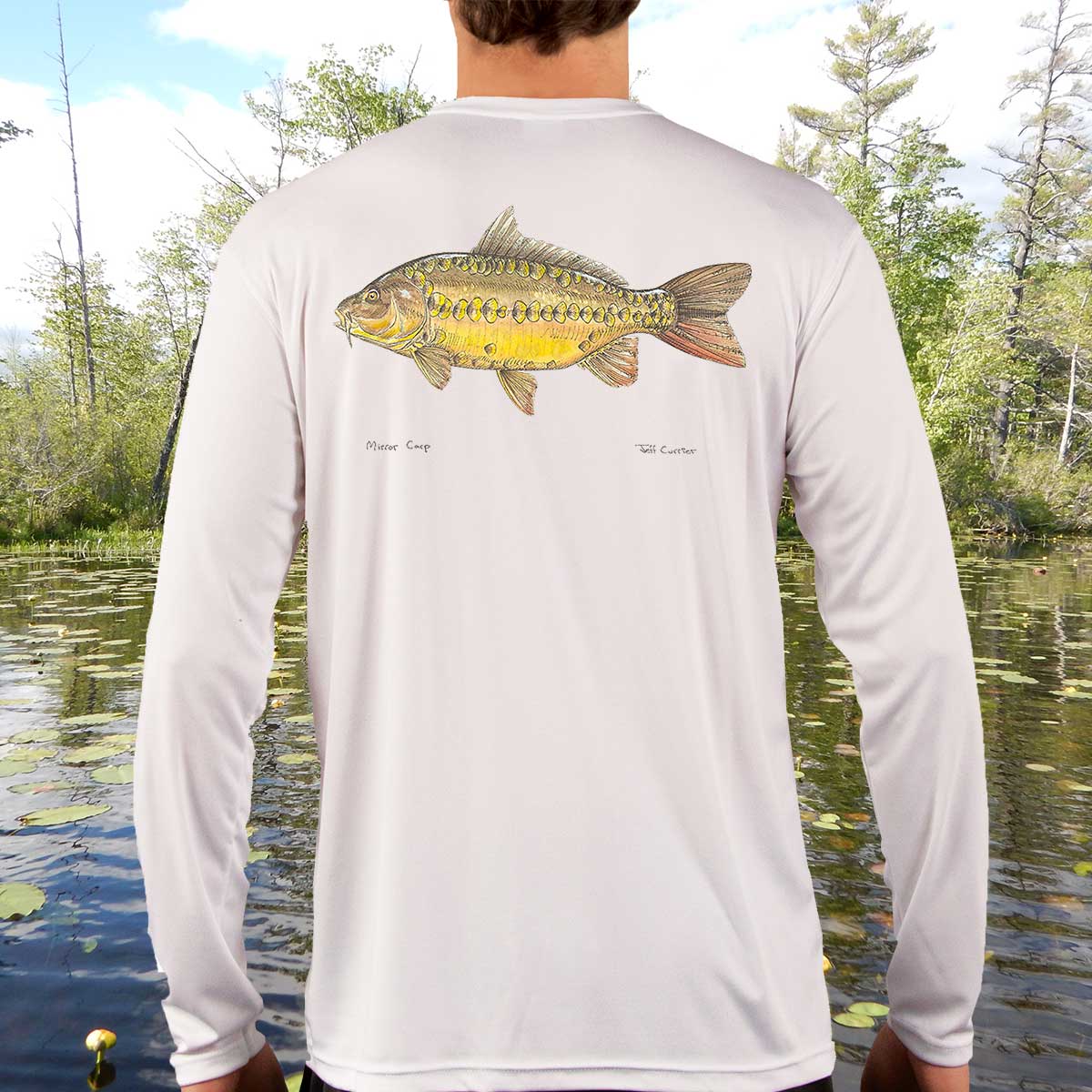 We simply love these shirts. Weather you are out fishing or just mowing the lawn, these shirts keep the sun off and keep you cool. The material is lightweight and nearly impossible to put a wrinkle in them. The anti-microbial technology is zinc based, and fends off a lot of our odor causing bacteria. The moisture wicking adds to keeping you cool, but the best part is wash after wash these shirts continue to perform, and Jeff’s artwork will never fade.