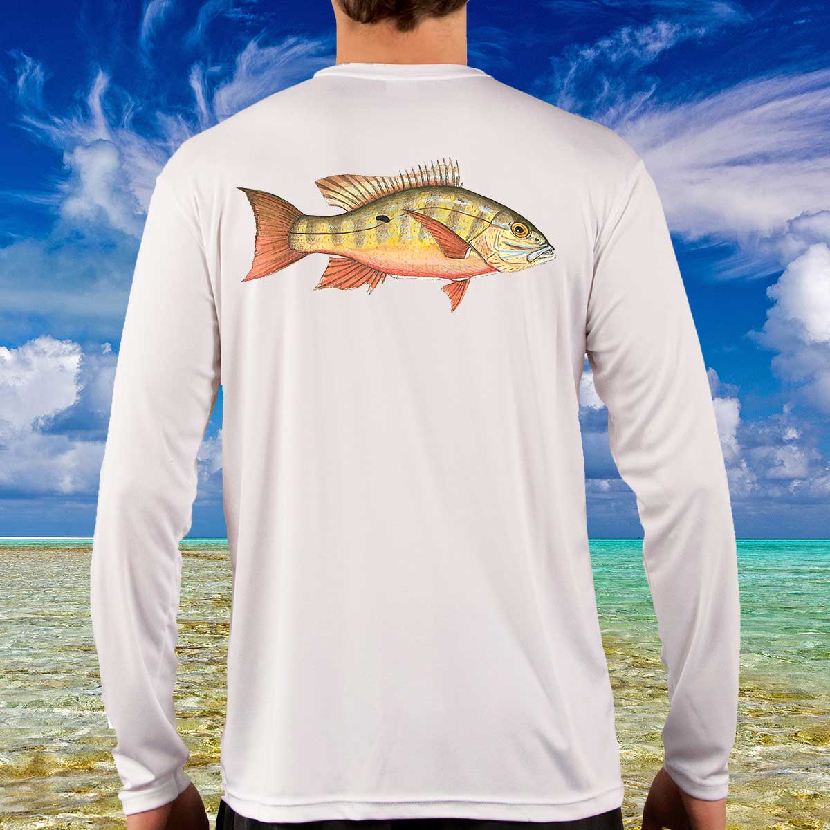 We simply love these shirts. Weather you are out fishing or just mowing the lawn, these shirts keep the sun off and keep you cool. The material is lightweight and nearly impossible to put a wrinkle in them. The anti-microbial technology is zinc based, and fends off a lot of our odor causing bacteria. The moisture wicking adds to keeping you cool, but the best part is wash after wash these shirts continue to perform, and Jeff’s artwork will never fade.