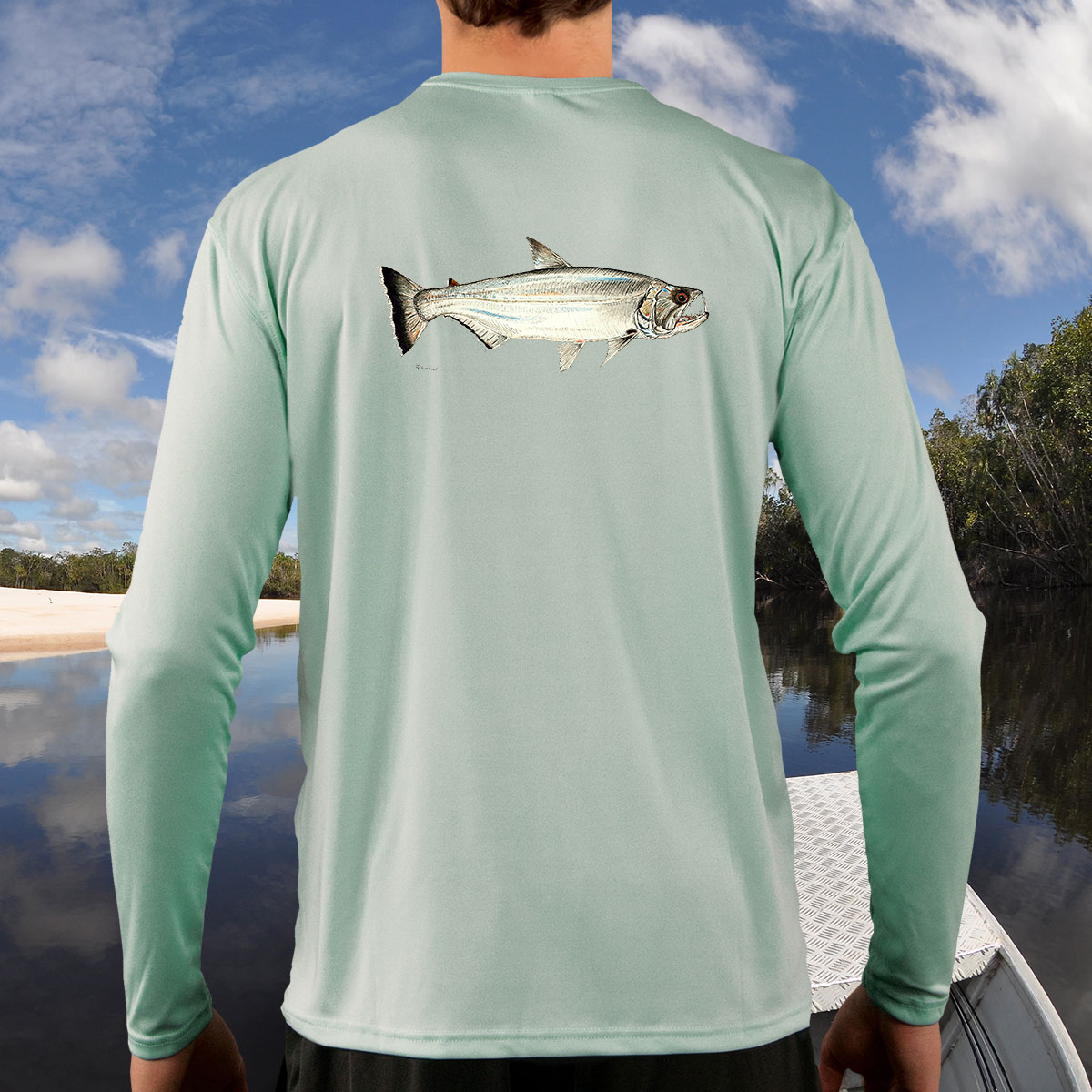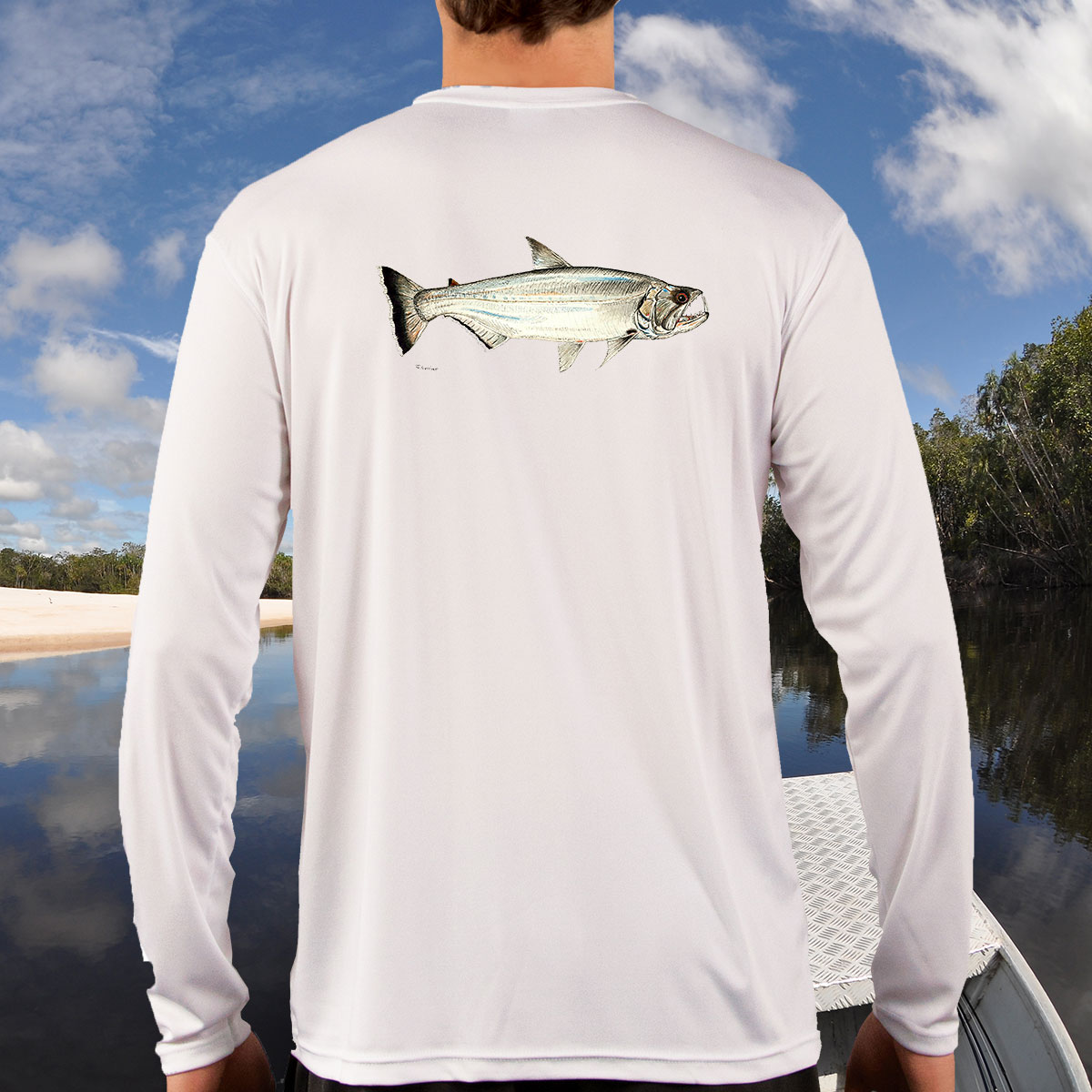 We simply love these shirts. Weather you are out fishing or just mowing the lawn, these shirts keep the sun off and keep you cool. The material is lightweight and nearly impossible to put a wrinkle in them. The anti-microbial technology is zinc based, and fends off a lot of our odor causing bacteria. The moisture wicking adds to keeping you cool, but the best part is wash after wash these shirts continue to perform, and Jeff’s artwork will never fade.