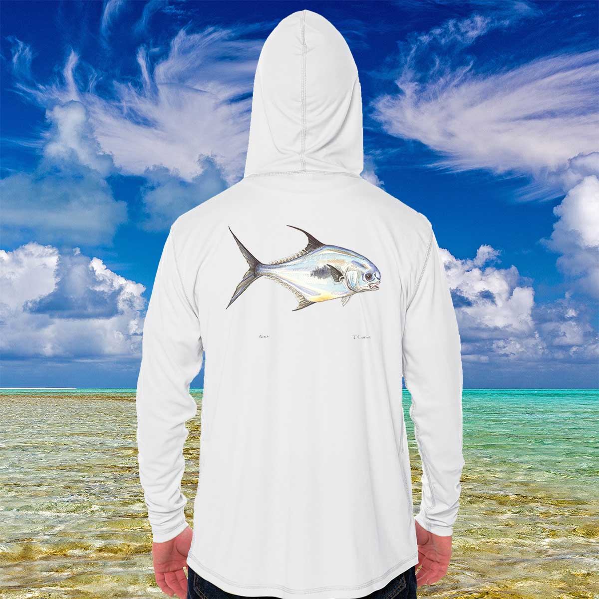 We simply love these hoodies. Weather you are out fishing or just mowing the lawn, these shirts keep the sun off and keep you cool. The material is lightweight and nearly impossible to put a wrinkle in them. The anti-microbial technology is zinc based, and fends off a lot of our odor causing bacteria. The moisture wicking adds to keeping you cool, but the best part is wash after wash these shirts continue to perform, and Jeff’s artwork will never fade.