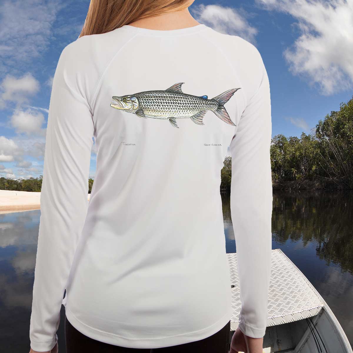 We simply love these shirts. Weather you are out fishing or just mowing the lawn, these shirts keep the sun off and keep you cool. The material is lightweight and nearly impossible to put a wrinkle in them. The anti-microbial technology is zinc based, and fends off a lot of our odor causing bacteria. The moisture wicking adds to keeping you cool, but the best part is wash after wash these shirts continue to perform, and Jeff’s artwork will never fade.